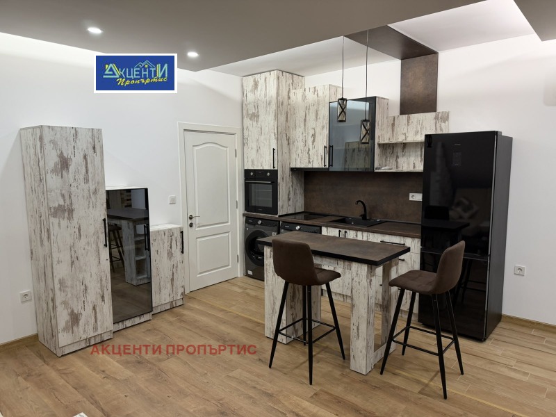 Агенция за недвижими имоти Акценти Пропъртис Ви предлагаме артистично жилище, единствено по рода си за гр. В. Търново, за хора с нестандартно виждане за уют и лукс. Предлагаме Ви апартамент на последен жилищен етаж, с прекрасна панорамна гледка. Дневна с кухненска част и спалня в един обем, покрита тераса 14 квадрата, коридор и баня с тоалетна. Хидромасажна вана с топла вода и невероятна гледка към Велико Търново!!!Чисто ново обзавеждане , пералня, сушилня , керамични котлони, печка, хладилник, телевизор 50 инча, най-висок клас климатик Mitsubishi Heavy Industries 18 за целия пентхаус. Мебелите са правени по поръчка \ПДЧ, Черен матов алуминий и стъкло/Първо отдаване под наем. Предлага се с възможност за наемане на надземно паркомясто, на цена по споразумение на месец /при желание от наемателя/. За повече въпроси на посочения телефон. При запитване мога да изпратя видео!Номер на офертата 24262.