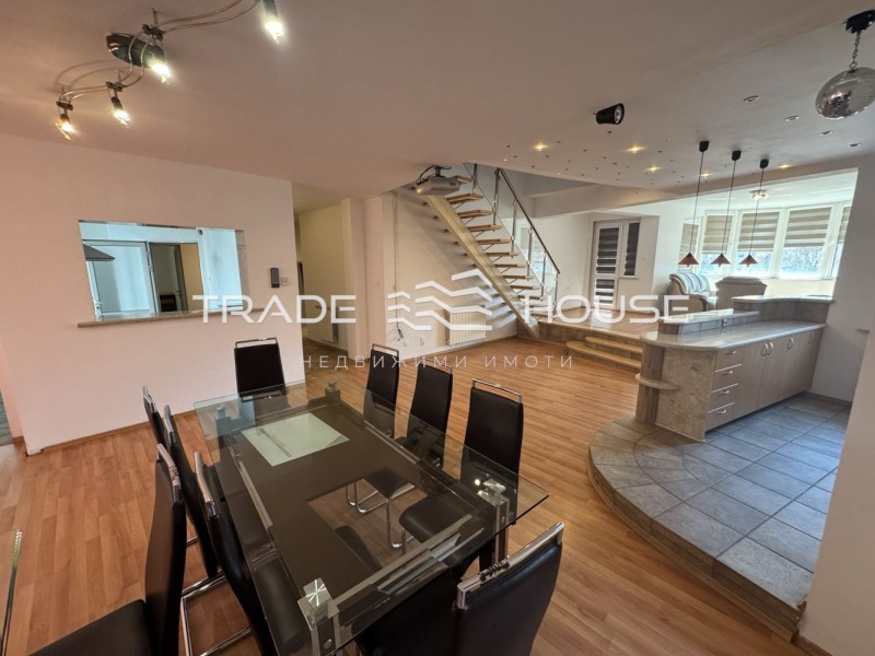 9248 Трейд Хаус недвижими имоти предлага ПОД НАЕМ апартамент с 4 спални, огромен хол с бар, дизайнерско осветление и проектор, както и просторна кухня с остров.