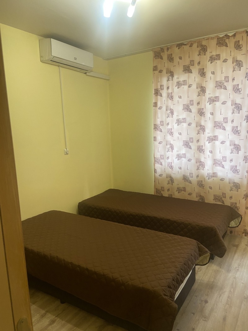 Тих, напълно обзаведен апартамент нa 2 (надпартерен) етаж в нова сгрaда ( въведена в експлоатация 2020г. ). Две спални- всяка от тях с по две легла ( хотелски тип, могат и да се съединят като спалня) остъклена тераса към всяка стая, самостоятелна всекидневна. Намира се зад ФУЛМАКС център. Отдава се под наем дългосрочно (мин. 1 година). Без домашни любимци. За чужденци- изискват се два депозита, предоставяме опция за регистрация За огледи моля позвънете на 0894490114 Мария