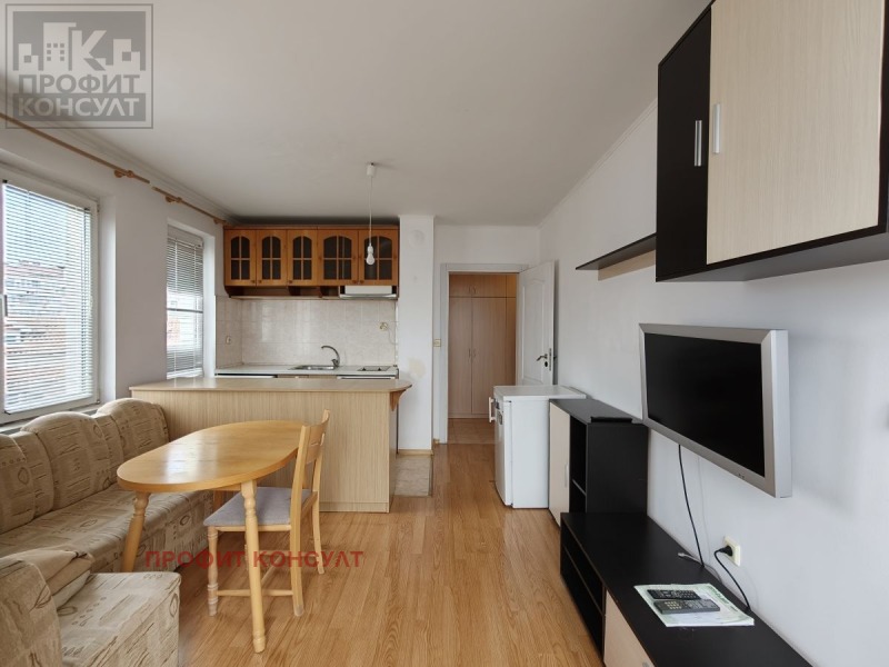Представяме ви двустаен апартамент под наем, разположен в кв. Картала , гр. Велико Търново. Жилището е с площ от 49, 5 кв. м. , разпределени между всекидневна с кухненски бокс, спалня, баня с тоалетна, коридор и тераса. Към имота има и таванско помещение, с големина 9 кв. м. Апартаментът се отдава обзаведен и оборудван с електроуреди- готварска печка, абсорбатор, хладилник, телевизор и пералня. Намира се на 3-ти междинен етаж с южно изложение. Отоплението и охлаждането са чрез климатик. Към наемната цена е включено паркомясто. Не е подходящ за домашни любимци.