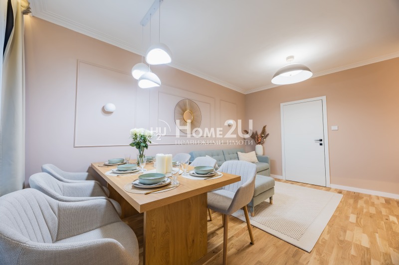 Апартаментът е напълно ремонтиран и обзаведен с чисто нови мебели и електроуреди от висок клас. Кухнята е оборудвана с електроуреди Bosch. В банята е инсталирано подово отопление, електрическото табло е със смарт управление, има електрически завеси в родителската спалня и хола, а в сервизното помещение са разположени пералня със сушилня и бойлер. Към апартамента има и прилежащо мазе 5 м² .