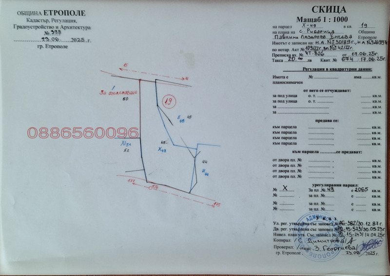 Продава се парцел в с. Рибарица, до гр. Етрополе