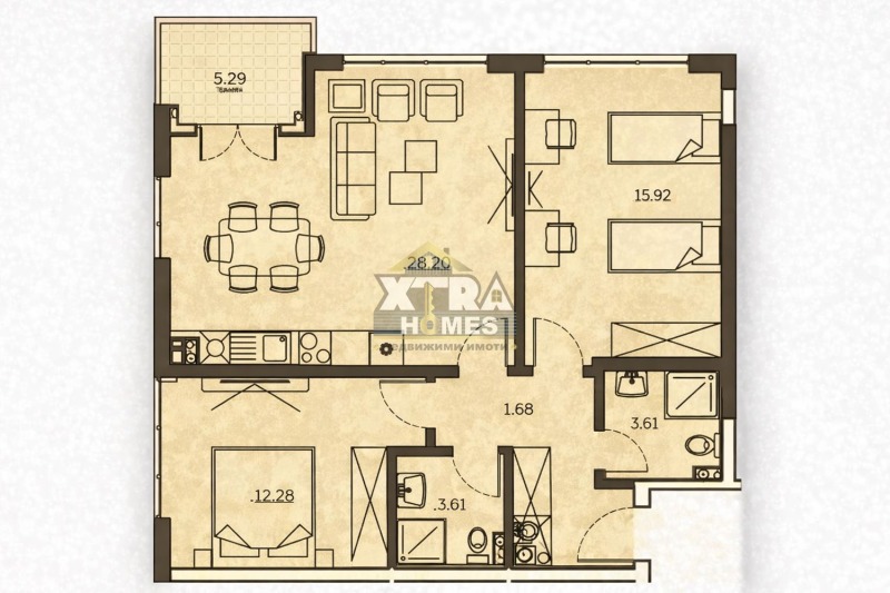 Екстра Хоумс предлага за продажба тристаен апартамент в новострояща се модерна сграда, разположена в уредената и бързо развиваща се част на кв. Малинова долина, в непосредствена близост до детската градина.